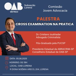 Data: 05.06.2025 às 19h | Local: OAB Lorena.